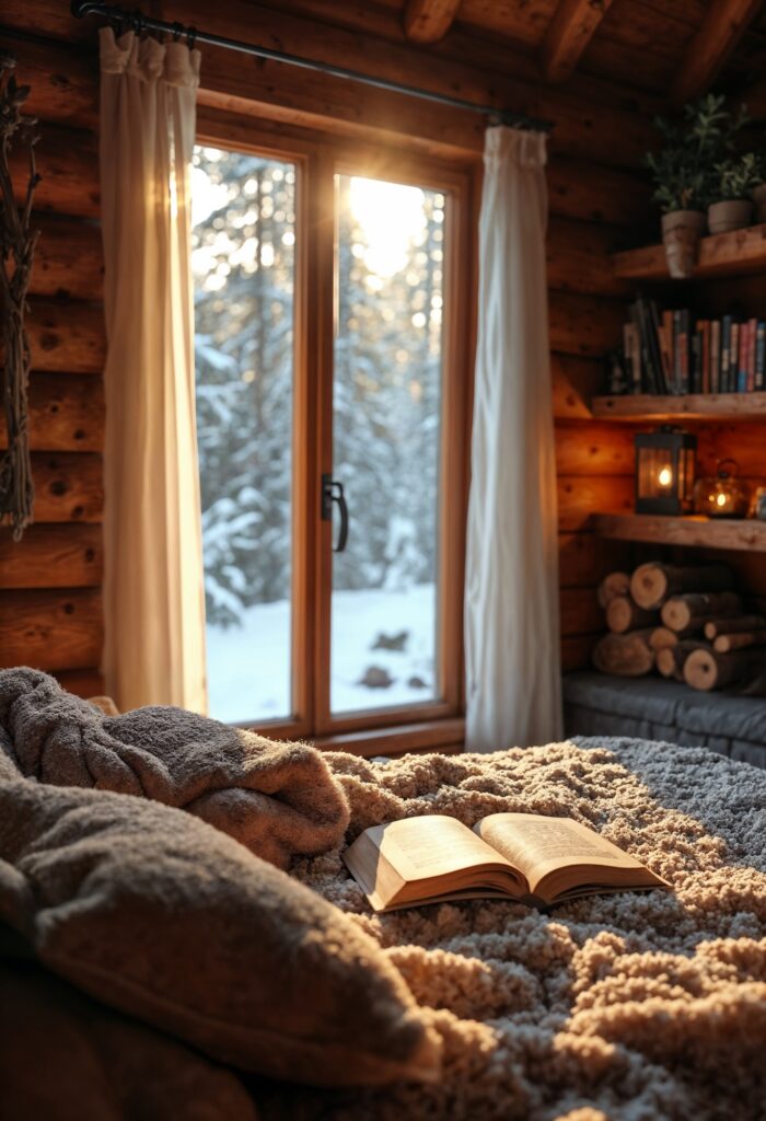 Imaginez une pièce chaleureuse aux décors enneigés, bois, plaids moelleux, lumières tamisées, senteurs épicés…